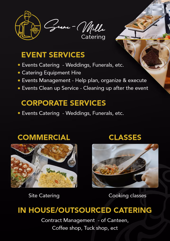 This project involved creating an animated social media ad for Seane-Mille Catering, showcasing their full range of event and corporate catering services. The motion design highlighted offerings such as buffet meals, dessert bars, platters, and kids’ packages in a dynamic and engaging way.