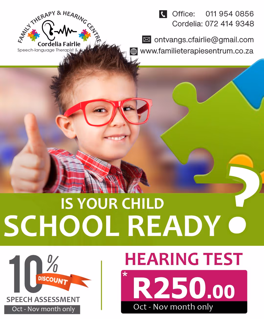 The Family Therapy and Hearing Center campaign promoted discounted hearing tests and back-to-school readiness. Vibrant colors and clean layouts created eye-catching ads, with one animated ad adding extra audience engagement.