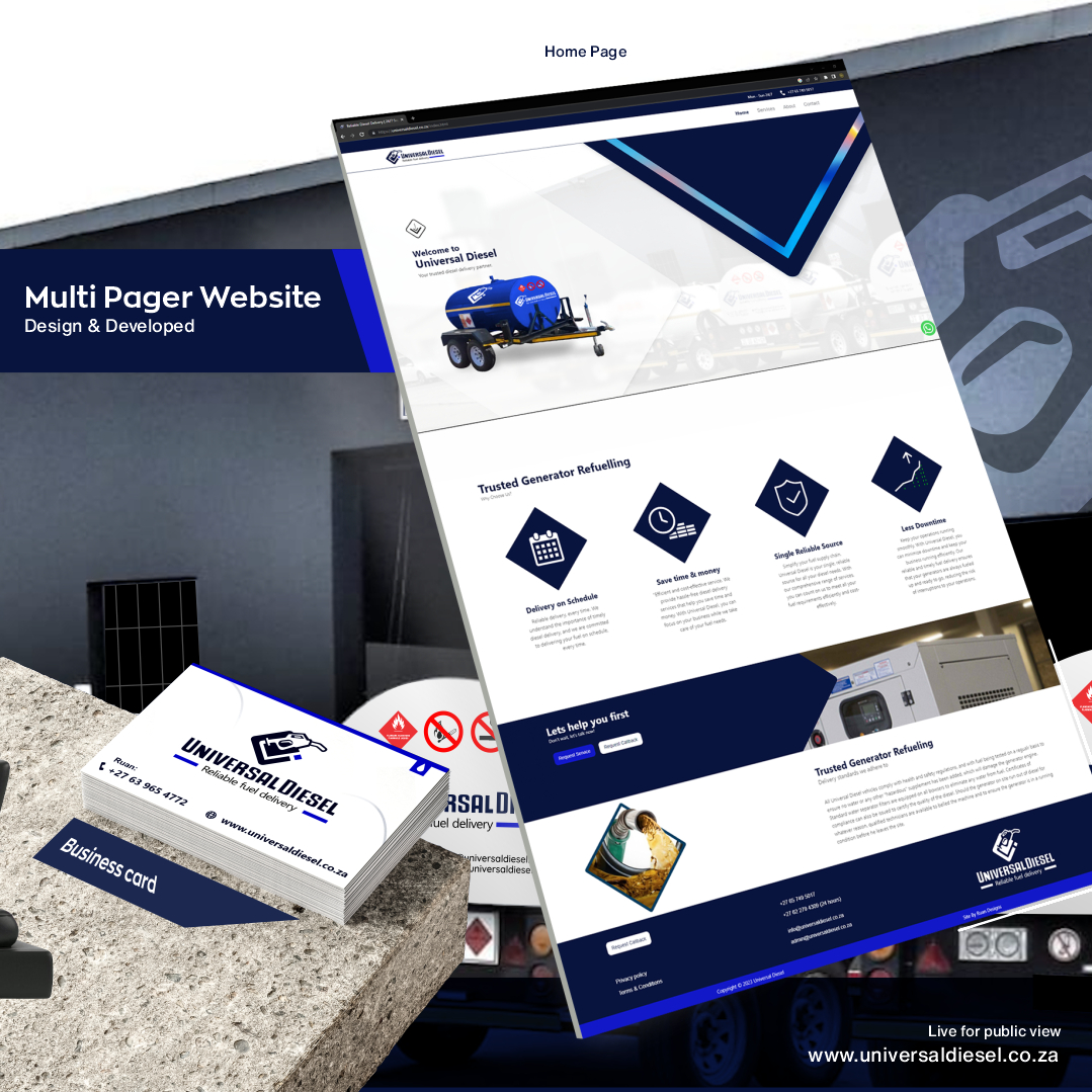 Complete startup branding and website development project. Beginning with logo design and company profile creation, we delivered a comprehensive multi-page website showcasing their diesel engine services and expertise, while establishing crucial brand elements that enable the public to understand and access their offerings.